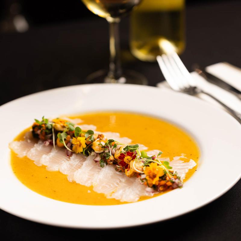 Fish tiradito with passion fruit sauce